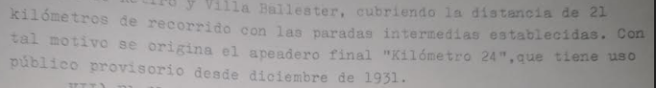 Finalmente, el 5 de agosto de 1932, el ministro de Obras Públicas Manuel Alvarado, habilitará al tráfico público la parada ferroviaria Kilómetro 24 en los siguientes términos:
